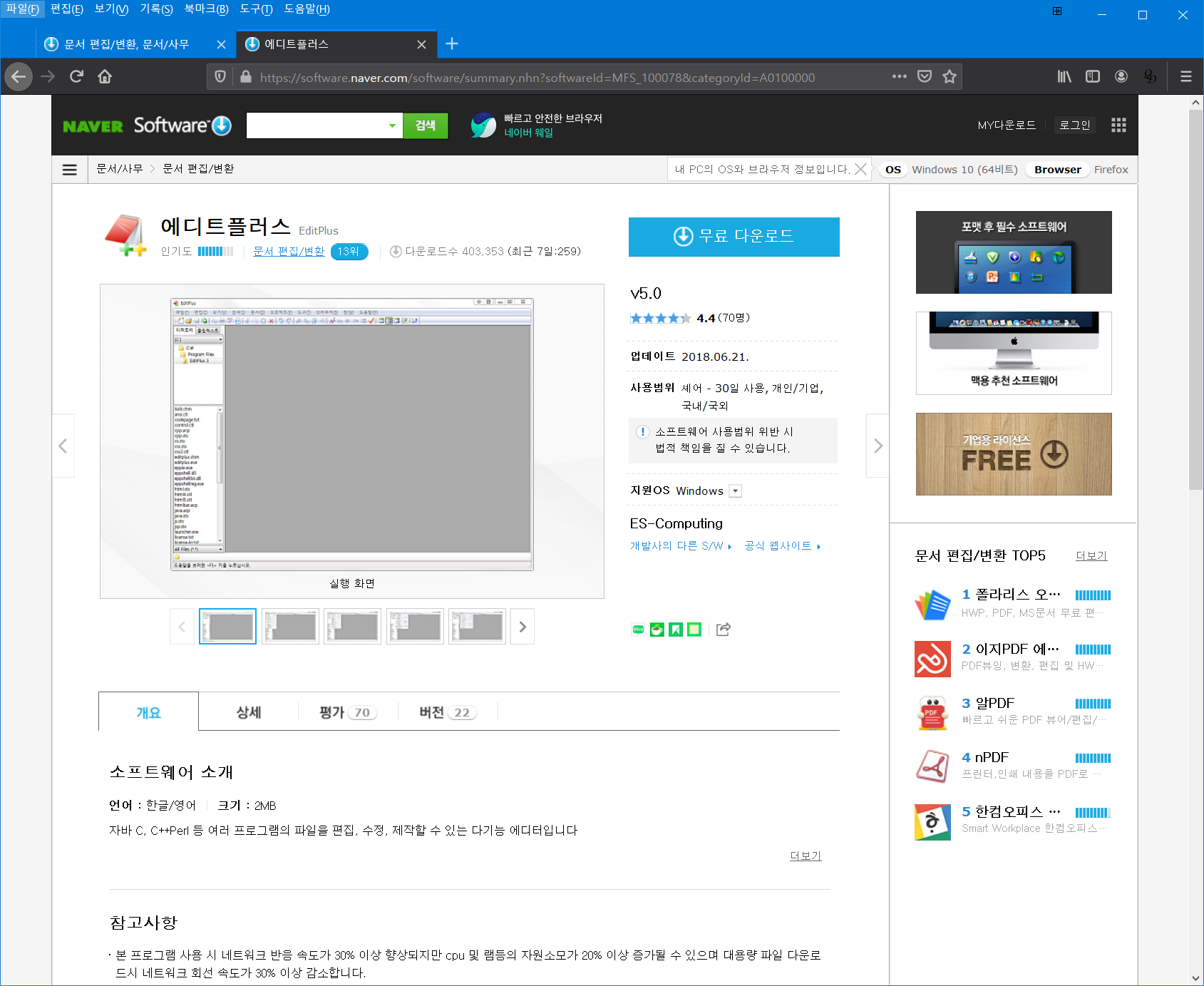 에디트플러스(EditPlus) 다운로드는 여기를 참조하세요.