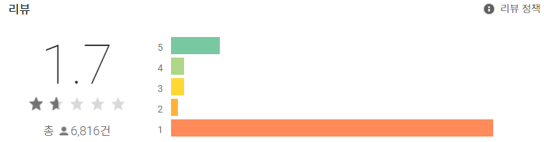 리뷰 점수가 상당히 낮으 1.7을 보이고 있으며, 업데이트와 서버관리관련하여 불만이 상당하지만, 앱에서 문제 발생시 한국산업인력공단의 큐넷 웹사이트를 직접 접속하여 처리가 가능합니다.
