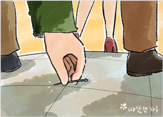 바닥에 떨어진 핀 | 따뜻한하루